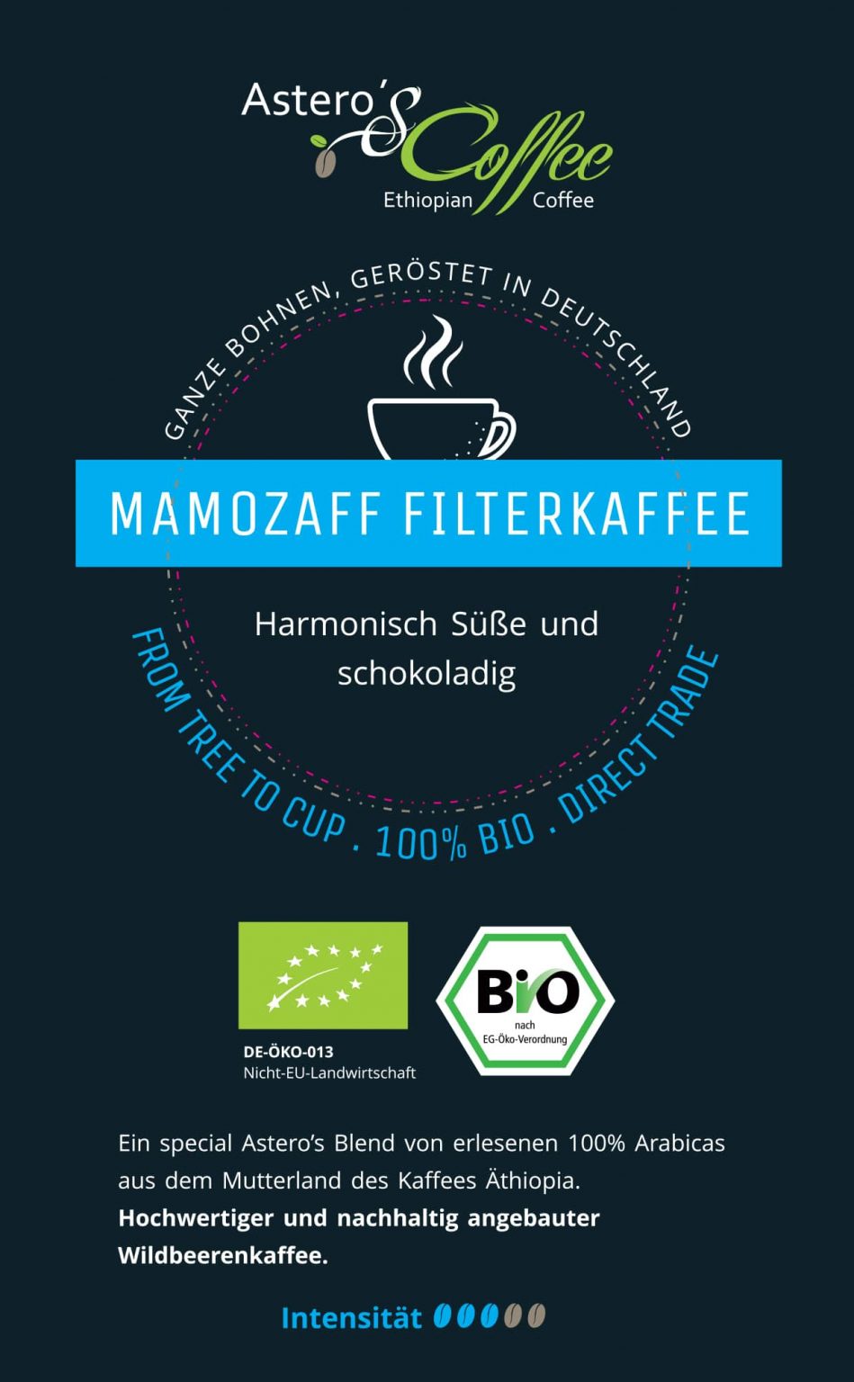 A special Astero’s blend of select 100% Arabica beans from Ethiopia, the birthplace of coffee.